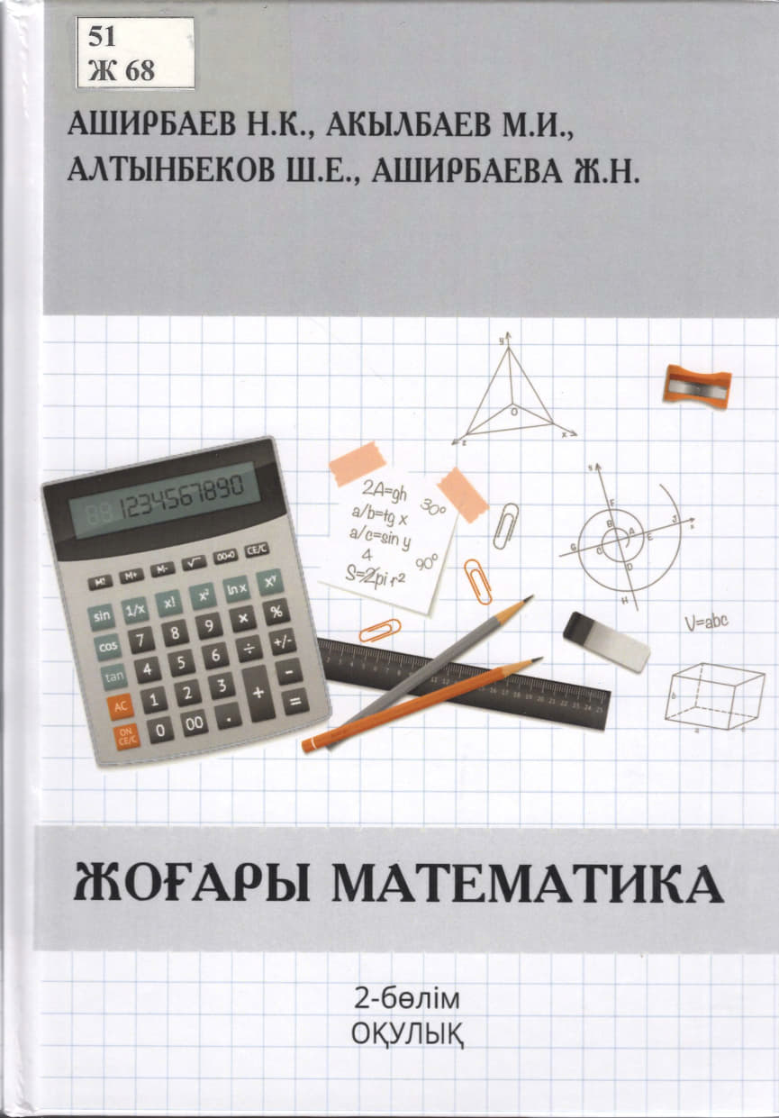 Жоғары математика [6В071700-Органикалық заттардың химиялық технологиясы мамандығына арналған] : оқулық / Н. К. Аширбаев [и др.]. 2-бөлім, 2024. - 395 б.